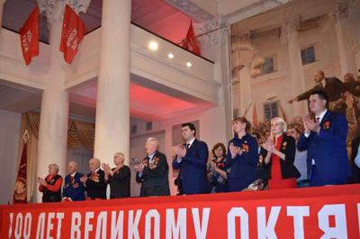 Перед собравшимися выступил лидер тульских коммунистов Олег Лебедев. Он рассказал о международном значении русской революции, которая сто лет назад изменила мир, о достижениях государства рабочих и крестьян в годы советской власти, об активной работе, которую по всем направлениям ведёт тульская областная партийная организация. Участников торжественного собрания с трибуны также поздравил ветеран Великой Отечественной войны, участник штурма рейхстага.
