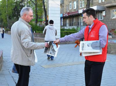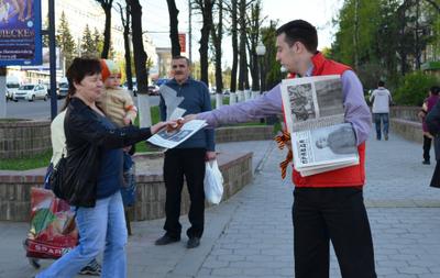 Всю неделю накануне Дня Победы тульские коммунисты раздавали жителям области спецвыпуск газеты «Правда» - копию газеты «Правда», вышедшей 10 мая 1945 года с первым обращением И.В. Сталина к народу после победы над фашистской Германией.
