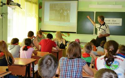 Главной отличительной чертой пионеров является любовь к Родине, которая невозможна без любви и знания родного языка. Бывший преподаватель русского языка и литературы, член бюро Привокзального райкома партии г. Тулы А.М. Шикалов рассказал ребятам об истории родного языка, о просветителях, ученых и литераторах, которые внесли большой вклад в развитие родной речи, о советской школе преподавания русского языка и литературы.