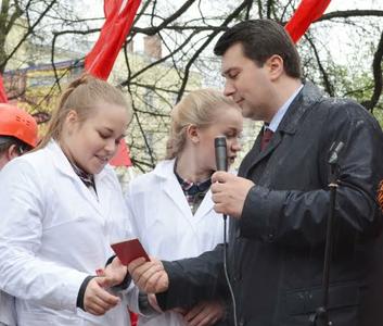 Начинается митинг с того, что первый секретарь обкома партии, депутат Госдумы Олег Лебедев вручает партийные билеты вновь вступившим товарищам – всего 70 человек – количество вступивших в партию в этот праздничный день символично соответствует 70-летию Великой Победы. Почти половину из новых членов КПРФ составили молодые рабочие оборонных предприятий области, работники транспортных и строительных предприятий Тулы и учащиеся строительного техникума, тульского медицинского училища.
