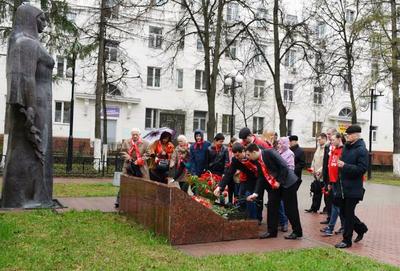 И вот перед участниками демонстрации сквер Коммунаров, в котором захоронены погибшие в борьбе за Советскую власть. К плитам с их именами ложатся красные гвоздики.