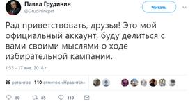 Твиттер-аккаунт кандидата на пост Президента РФ Павла Грудинина мгновенно стал популярным