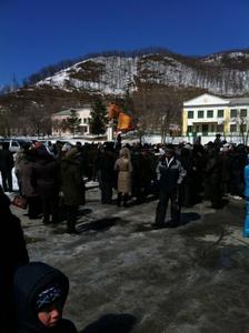 Несмотря на холодную и ветреную погоду, в Дальнегорске на центральной площади собралось более 1000 человек, хотя изначально было заявлено 500. Недовольство полиции вызвали разве что представители партии «Справедливая Россия», которые пришли со своими флагами, но на ход митинга это никак не повлияло.
