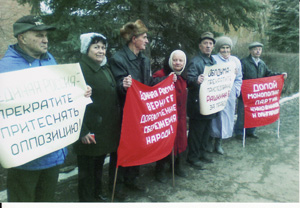 Мы, участники пикетирования 3 декабря 2009г. общественной приёмной партии «Единой России» в г.Пугачёве от Пугачёвского отделения КПРФ и его сторонников, заявляем следующее. Из газет «МК», «Взгляд» и других изданий стало известно, что один из лидеров партии «Единая Россия» Володин В.В. выступил с инициативой привлечь Депутата Госдумы Рашкина В.Ф. к уголовной ответственности за экстремизм. Ранее средства массовой информации писали, что Рашкин В.Ф. неоднократно обращался в Генеральную прокуратуру и Президенту РФ о коррупционных делах некоторых чиновников Саратовской области, членов партии «Единая Россия». Этот материал был спущен на тормозах в этих структурах, на том и закончилась борьба с коррупцией в области, что вызвало у общественности негативное отношение к органам власти. И вот чиновничья рать всей мощью партии «Единая Россия» направила удар против Рашкина В.Ф., чтобы не было повадно антикоррупционерам!