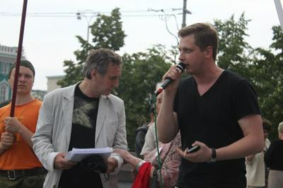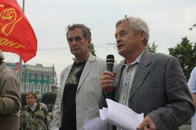 Открыл митинг первый секретарь Свердловского ОК КПРФ, депутат ЗССО Дмитрий Шадрин: