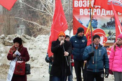 Перед собравшимися выступили депутат-коммунист гордумы Д.В. Шумихин, секретари райкомов КПРФ: Д.В. Сорокин (Заводской (Сталинский)), В.Е. Новиков (Октябрьский), А.В. Рыжов (Саратовский), активисты КПРФ, представители молодёжных и ветеранских организаций.