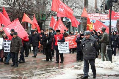 23 февраля – День Советской армии и Военно-морского флота саратовские коммунисты и комсомольцы отметили демонстрацией и торжественным митингом в поддержку российской армии, оборонной промышленности и науки, против бездарной, антинародной политики буржуазной власти, против роста тарифов на ЖКУ, против непринятия срочных мер по социальной защите трудящихся, пенсионеров, молодёжи и студентов.