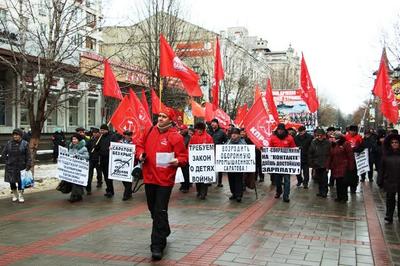 В одном строю шагали комсомольцы и коммунисты, ветераны армии и жители города. Лозунги, под которыми проходил митинг, красноречиво говорили о реальных настроениях народа: «Укрепим армию – отстоим Россию!», «Да здравствует 98-я годовщина создания Советской Армии и Военно-Морского Флота!», «Слава защитникам Отечества!», «Да здравствует Красное знамя Победы!», «Выборы должны быть честными!», «Даешь экономическую и финансовую политику – в интересах народа!», «Цены на продовольствие и тарифы ЖКХ – под контроль народа!», «Поддержим саратовскую оборонную промышленность и науку!», «Принять закон о «Детях войны»!, «Сердюкова – под суд!» и др.