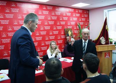 Затем, в помещении конференц-зала Ульяновского областного отделения КПРФ по адресу: ул. Красноармейская, д. 17 состоялся двенадцатый Пленум обкома КПРФ, главной темой которого стало донесение позиции ЦК партии о борьбе с антисоветизмом и русофобией. Заседание началось с приятного события – одному из ветеранов организации, доктору технических наук, лауреату Ленинской премии Вячеславу Валентиновичу Алексейчику вручили высшую партийную награду – орден «Партийная доблесть». Также в ходе мероприятия были вручены партийные билеты вновь вступившим в ряды КПРФ. На мероприятии присутствовала заведующая сектором отдела ЦК по организационной и кадровой работе, член бюро ЦК ЛКСМ РФ Мария Дробот.