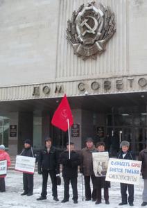 У Дома Советов, в котором размещаются не только Законодательное Собрание области, но и областной Избирком, было заявлено сразу два пикета. Коммунисты приурочили пикет к пленарному заседанию ЗСО, на котором депутатам – единороссам, имеющим большинство голосов, велено принять областной закон, предусматривающий дополнительные ограничения для проведения массовых мероприятий в населенных пунктах. Правящая партия пытается лишить граждан возможности демонстрировать неприятие антинародных действий режима в людных местах и, особенно, рядом со зданиями, в которых весьма комфортно разместились «слуги народа». Отношение порядочных людей к этим антиконституционным намерениям ярко показывали лозунги: «Слушать народ боятся только оккупанты», «Ограничение конституционных прав – путь к фашизму». Содержание ряда плакатов говорило о решительном неприятии людоедских тарифов на услуги ЖКХ.
