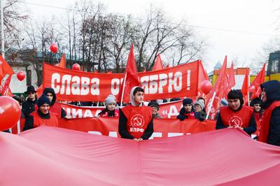 7 ноября 2017 года Ульяновское областное отделение КПРФ, в честь векового юбилея Великой Октябрьской социалистической революции организовало демонстрацию и митинг. Немало жителей региона, несмотря на то, что сегодня был рабочий день, откликнулась на призыв коммунистов и пришли на праздничные мероприятия – собралось около тысячи человек, немало было и молодёжи.