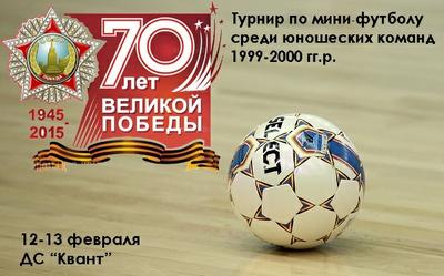 12 и 13 февраля в Троицке (ДС «Квант») пройдет турнир по мини-футболу «Кубок 70-летия Великой Победы» среди юношей 1999-2000 гг. рождения. В турнире примут участие команды СК КПРФ, Дина (Москва), Дина (Троицк) и сборная ДЮСШ Донецкой и Луганской областей.
