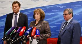 18 октября, предваряя пленарное заседание в Госдуме, перед журналистами выступили член Комитета ГД по бюджету и налогам В.А. Ганзя, первый заместитель председателя Комитета ГД по экономической политике, промышленности, инновационному развитию и предпринимательству Н.В. Арефьев, первый заместитель председателя Комитета ГД по образованию и науке О.Н. Смолин.