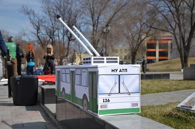 В качестве иллюстрации к сказанному двое участников мероприятия, изображая первых лиц города и области, стали на глазах у собравшихся пилить специально изготовленную для этого картонную модель троллейбуса. После этого под крики: «Позор!» и «Оставьте троллейбус в покое!» данные «лица» вынуждены были покинуть площадку.