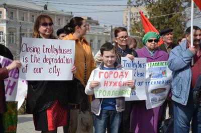 В Астрахани коммунисты провели митинг за сохранение троллейбусного транспорта