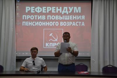 В Астрахани по инициативе областного отделения КПРФ создана инициативная группа по проведению референдума о необходимости (или отсутствии таковой) повышения пенсионного возраста в России. В тот же день в облизбирком были поданы документы ещё от одной инициативной группы.