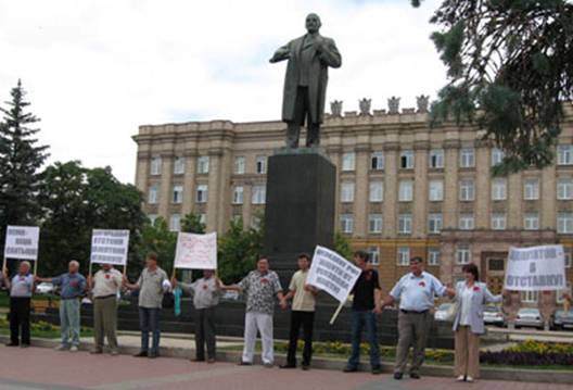 В Белгороде продолжаются акции протеста против намерения властей снести главный в городе памятник В.И. Ленину на площади Революции (после переименования – Соборной). Одной из них стал щит у памятника Ильичу.