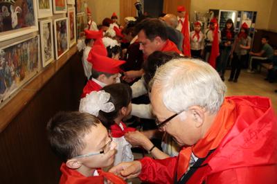 После того, как мальчики и девочки, выстроившиеся в ровный ряд, уже были в пионерских галстуках, их тепло поздравили председатель совета регионального отделения женского движения «Надежда России» Галина Васильевна Марина, ветеран партии Геннадий Сергеевич Пономарёв, секретарь обкома КПРФ Сергей Васильев, секретарь обкома ЛКСМ Эльдар Гильмутдинов, член совета общественной организации «Защитник Отечества», ветераны войны в Афганистане, майор запаса Михайл Петрович Сергеев, а также, ещё одна представительница «Надежды России» Раиса Илларионовна Дерипаско. Каждый из них нашёл единственно верные и тёплые слова, которые в эти минуты оказались кстати.