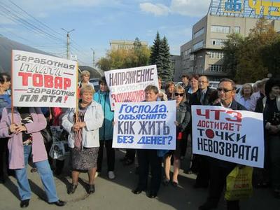 В 16.00 присутствующие развернули лозунги: «Право на зарплату гарантировано Конституцией»; «Господа объясните, как жить без денег?»; «ЧТЗ достигает точки невозврата!»; «Верните профсоюзу членские взносы!»; «Наш труд должен быть оплачен своевременно!», «За развал ЧТЗ – ответите!».