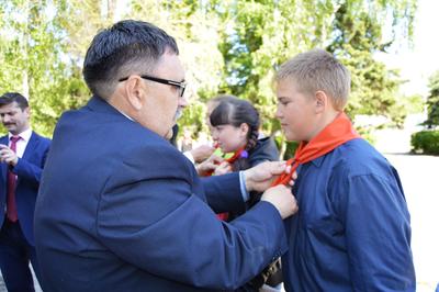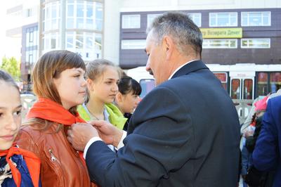 Первый секретарь Барнаульского горкома КПРФ Андрей Сартаков рассказал ребятам, что «пионерский галстук - символическая частица красного знамени. Знамени, с которым побеждали наши отцы и деды. И я желаю вам быть достойными этого почетного звания – пионер».