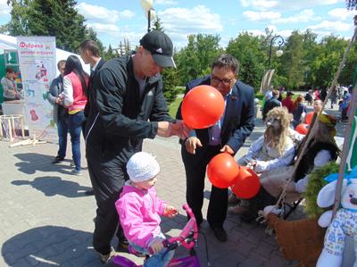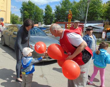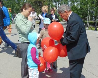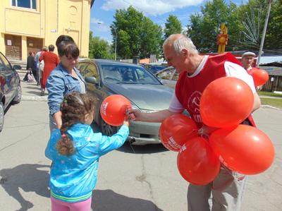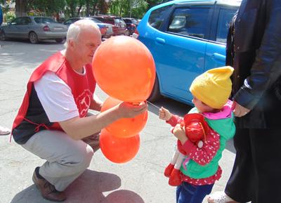 В День защиты детей алтайские коммунисты дарили ребятишкам шарики и шоколадки с надписью «КПРФ – детям!»