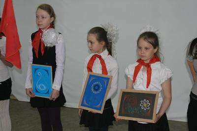 Затем наступил самый волнующий момент – прием в пионерскую организацию. Ребята дали торжественное обещание, коммунисты и комсомольцы повязали им алые галстуки и прикололи пионерские значки.