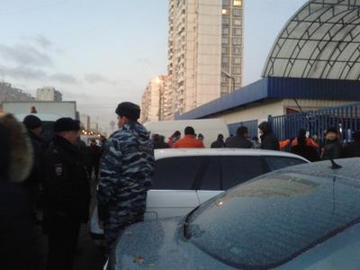 Сегодня в 6.30 утра в районе Выхино начался снос рынка на Самаркандском бульваре – единственного на весь район рынка сельхозпродукции отечественного производителя. На рынок пригнали несколько автобусов с ОМОНом, бульдозеры, отключили свет. В настоящее время на рынке собралось около 300 работников рынка и местных жителей. Поддержать требования москвичей приехал руководитель фракции КПРФ в Мосгордуме Андрей Клычков.