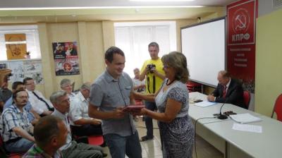 Перед началом мероприятия в торжественной обстановке О.Н. Алимова вручила членские билеты молодым коммунистам и комсомольцам. Также Ольга Николаевна вручила памятные подарки в честь дня рождения Денису Шумихину – депутату-коммунисту Саратовской гордумы и Владимиру Новикову – первому секретарю Октябрьского РК КПРФ.