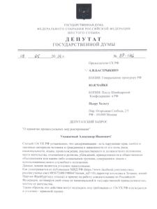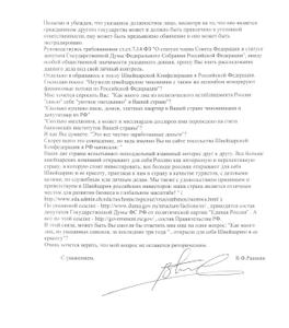 Депутат Госдумы фракции КПРФ В.Ф. Рашкин направил депутатские запросы Председателю Следственного Комитета РФ А.И. Бастрыкину, генпрокурору РФ Ю.Я. Чайке и послу Швейцарской конфедерации в РФ Пьеру Хельгу.