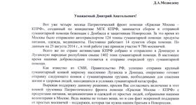 В письме выражена полная поддержка решению Правительства РФ направить в Новороссию очередной гуманитарный конвой с грузами для мирного населения Донецка и Луганска.