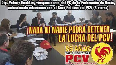 6 марта Рашкин встретился министром культуры Венесуэлы, председателем оргомитета по празднованию столетия революции, братом Уго Чавеса Аданом Чавесом. Он также также провёл четырёхчасовую встречу с генеральным секретарем ЦК Компартии Венесуэлы Оскаром Фигера и с Политбюро. Затем Валерий Фёдорович побывал в Российском посольстве, где пообщался с послом России в Венесуэле Владимиром Заемским, а также делегациями из Абхазии и Южной Осетии.