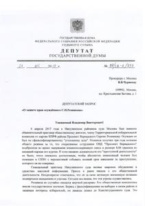 Заместитель председателя ЦК КПРФ, депутат Госдумы Валерий Рашкин обратился в к прокурору Москвы Владимиру Чурикову, в Никулинскую межрайонную прокуратуру, к главе ЦИК Элле Памфиловой, к уполномоченному по правам человека в РФ Татьяне Москальковой, к уполномоченному по защите прав предпринимателей Борису Титову и к уполномоченному по правам ребёнка в Москве Евгению Бунимовичу.