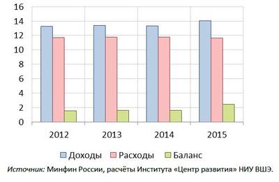 Вплоть до 2015 года, доходы довольно значительно превышают расходы.