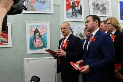 7 ноября в Государственной Думе открылась выставка работ Всероссийского конкурса юных художников «Залп Авроры», приуроченного к 100-летию Великого Октября. В торжественной церемонии принял участие Председатель ЦК КПРФ Г.А. Зюганов.