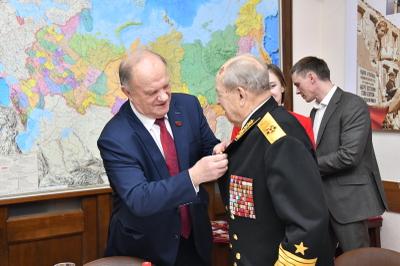 В понедельник, 18 февраля, в холле фракции КПРФ в Государственной Думе состоялось торжественное мероприятие по случаю Дня Советской Армии и Военно-Морского Флота. С приветственным словом к участникам обратился Председатель ЦК КПРФ Г.А. Зюганов.