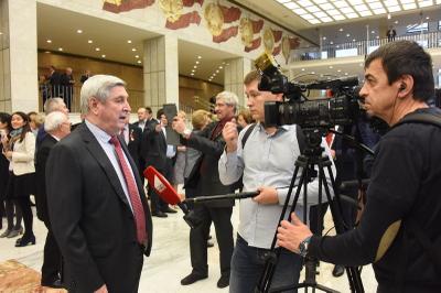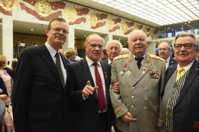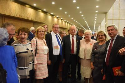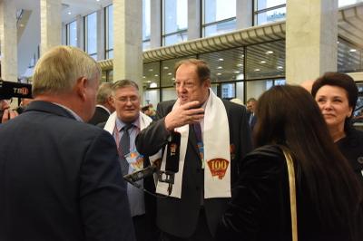 Первый секретарь ЦК ВЛКСМ в 1977-1982 годах Борис Пастухов также поздравил пришедших с юбилеем комсомола и отметил, что важно помнить уже почивших членов комсомола. "Невозможно промолчать о тех, кто не дошел до этого светлого дня, это, прежде всего, сопредседатель нашего комитета, Иосиф Давыдович Кобзон", - при этих его словах зал встал.