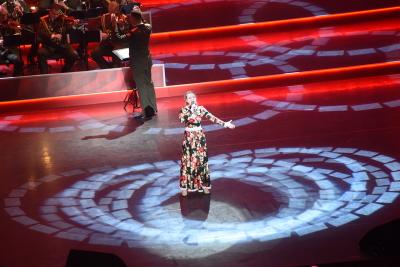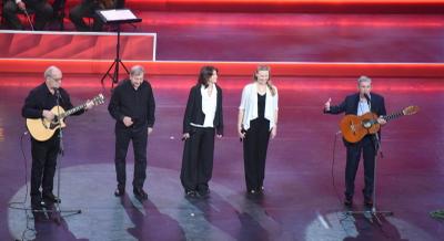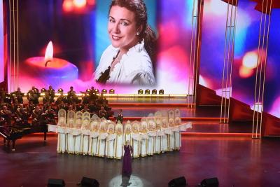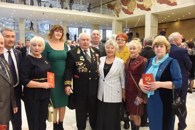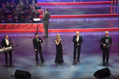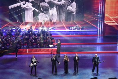 Для гостей вечера выступили народные и заслуженные артисты, прозвучали песни "Это наша с тобой биография", "Как молоды мы были" и другие знаменитые композиции, связанные с советской эпохой.