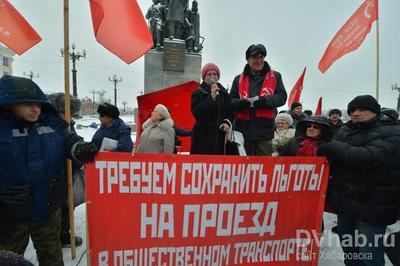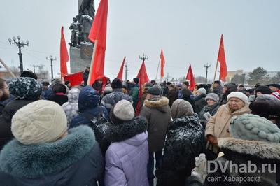 В субботу, 28 ноября, на Комсомольской площади Хабаровска состоялся митинг за отставку краевого руководства, организованный Хабаровским краевым комитетом КПРФ. Мероприятие проводилось в рамках кампании за отставку губернатора и правительства, а также роспуск Законодательной Думы Хабаровского края.