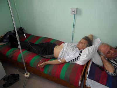 В настоящее время все тринадцать человек, поочередно, помещены в стационар. Те, кто оклемались, из под капельницы, снова в гаражной голодовке. Там сейчас пять участников голодовки. Когда мы выйдем из коматозного состояния, все дружно возобновим голодовку. Голодовка бессрочная. Хорошо, что медики предотвращают летальный исход.