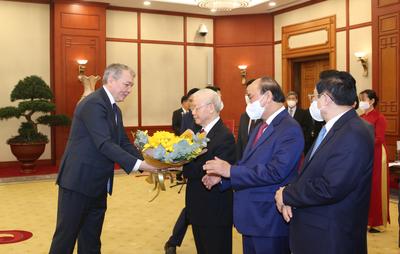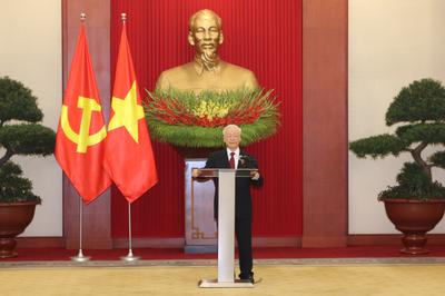 Вчера в Центральном комитете КПВ состоялась торжественная церемония вручения Ленинской премии ЦК КПРФ Генеральному секретарю ЦК Коммунистической партии Вьетнама товарищу Нгуену Фу Чонгу, присужденную ему за большой личный вклад в практику социалистического строительства и развитие коммунистического движения на современном этапе, многолетнюю деятельность по изучению и применению марксистско-ленинских философских знаний, научную разработку актуальных проблем социализма в качестве главного редактора журнала ЦК КПВ «Коммунист» и председателя Теоретической комиссии ЦК Компартии Вьетнама, за систематические усилия, направленные на укрепление отношений дружбы и братства между народами Вьетнама и России.