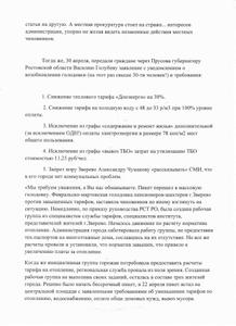 Тогда же, 30 апреля, передали граждане через Прусова губернатору Ростовской области Василию Голубеву заявление с уведомлением о возобновлении голодовки (на этот раз свыше 30-ти человек!) и требования: