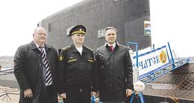 На подводном корабле депутатов встречал его командир капитан 2 ранга Андрей Сайков. Он рассказал гостям об истории создания и возможностях подводных лодок такого класса.