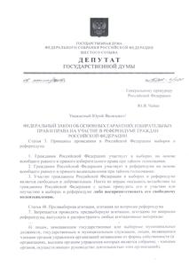 Депутат-коммунист Госдумы VI созыва, кандидат в депутаты Госдумы VII созыва В.И. Бессонов направил запросы Председателю ЦИК РФ Э.А. Памфиловой и Генпрокурору РФ Ю.Я. Чайке.