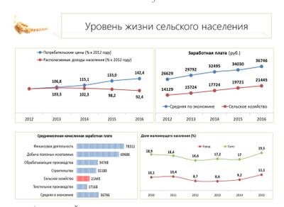 Аналогичный результат мы получим, если взглянем на Государственную программу «Социальная поддержка граждан», финансирование которой в 2018 году из средств федерального бюджета составит 1 327,8 млрд. рублей, а вместе с бюджетами государственных внебюджетных фондов – все 2 трлн. рублей. Одним из ключевых ее целевых показателей является «Численность населения с денежными доходами ниже величины прожиточного минимума, в процентах от общей численности населения». Правительство ставило цель на 2016 год довести данный показатель до 10%, а отчиталось в фактическом показателе 13,5%. На сельских же территориях к малоимущему населению в 2016 году было отнесено 19,5% жителей!