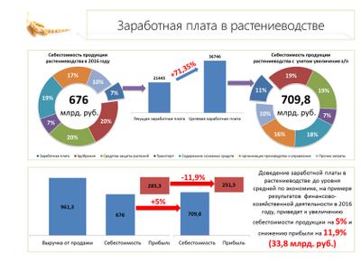 Сельскохозяйственное производство продолжает давить диспаритет цен. Сельские труженики вынуждены работать за копейки, по сути, жертвуя свой недополученный доход на то, чтобы сельскохозяйственное производство имело возможность существовать. Причем этот вклад, исходя из структуры себестоимости сельскохозяйственной продукции, в растениеводстве оценивается на уровне 34 млрд. рублей, а в целом, с животноводством и другими отраслями – более 100 млрд. рублей.