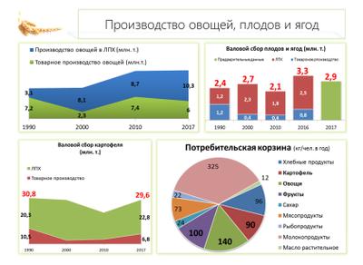 Если взять овощеводство и картофелеводство, мы также видим, что более 70% этой продукции производится в хозяйствах населения с очень низкой товарностью.