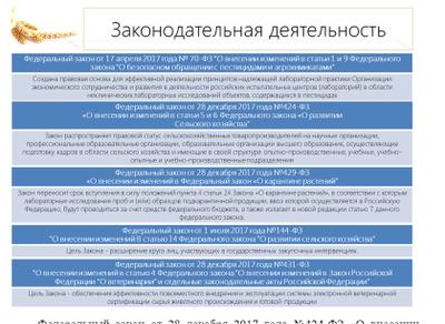 Федеральный закон от 28 декабря 2017 года №424-ФЗ «О внесении изменений в статьи 5 и 6 Федерального закона «О развитии Сельского хозяйства". Закон предоставил доступ к средствам государственной поддержки сельскохозяйственного производства научным организациям, профессиональным образовательным организациям, вузам, осуществляющим подготовку кадров в области сельского хозяйства и имеющим в своей структуре опытно-производственные, учебные, учебно-опытные и учебно-производственные подразделения.