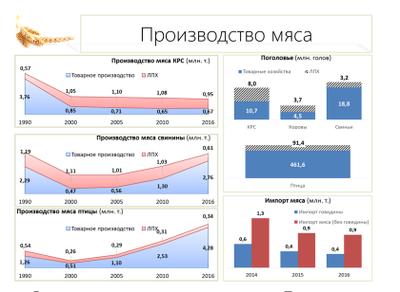В животноводстве у нас тоже есть чем гордиться. Производство мяса свинины удалось восстановить до уровня 1990 года, а производство мяса птицы вывести на уровень в 3 раза выше, чем в 1990 году.