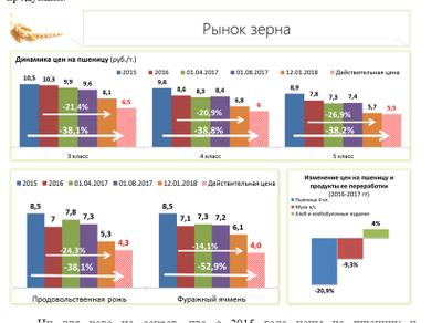 При этом показательно, что на фоне столь резкого падения цен на сырье, потребительские цены на хлеб и другие продовольственные товары продолжали расти. Хлеб вырос в цене на 4% (2016 год к 2017 году)!