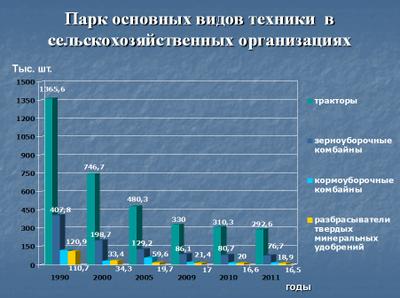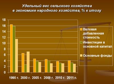 Можно сколько угодно говорить о разных принимаемых мерах, выбранных направлениях и движениях, и даже увидеть где-то точку роста. Но мы не должны заниматься самообманом. Надо реально оценивать ситуацию, если мы хотим действительно изменить ее к лучшему. А она на самом деле не очень приглядная. Отрасль в целом потеряла в интегральных оценках производства примерно в 3-4 раза к уровню 1990 года. В том числе в 4 раза уменьшились инвестиции, в 17 раз снизилась государственная поддержка сельского труженика. В общих основных фондах страны доля сельского хозяйства сократилась в 4 раза.
